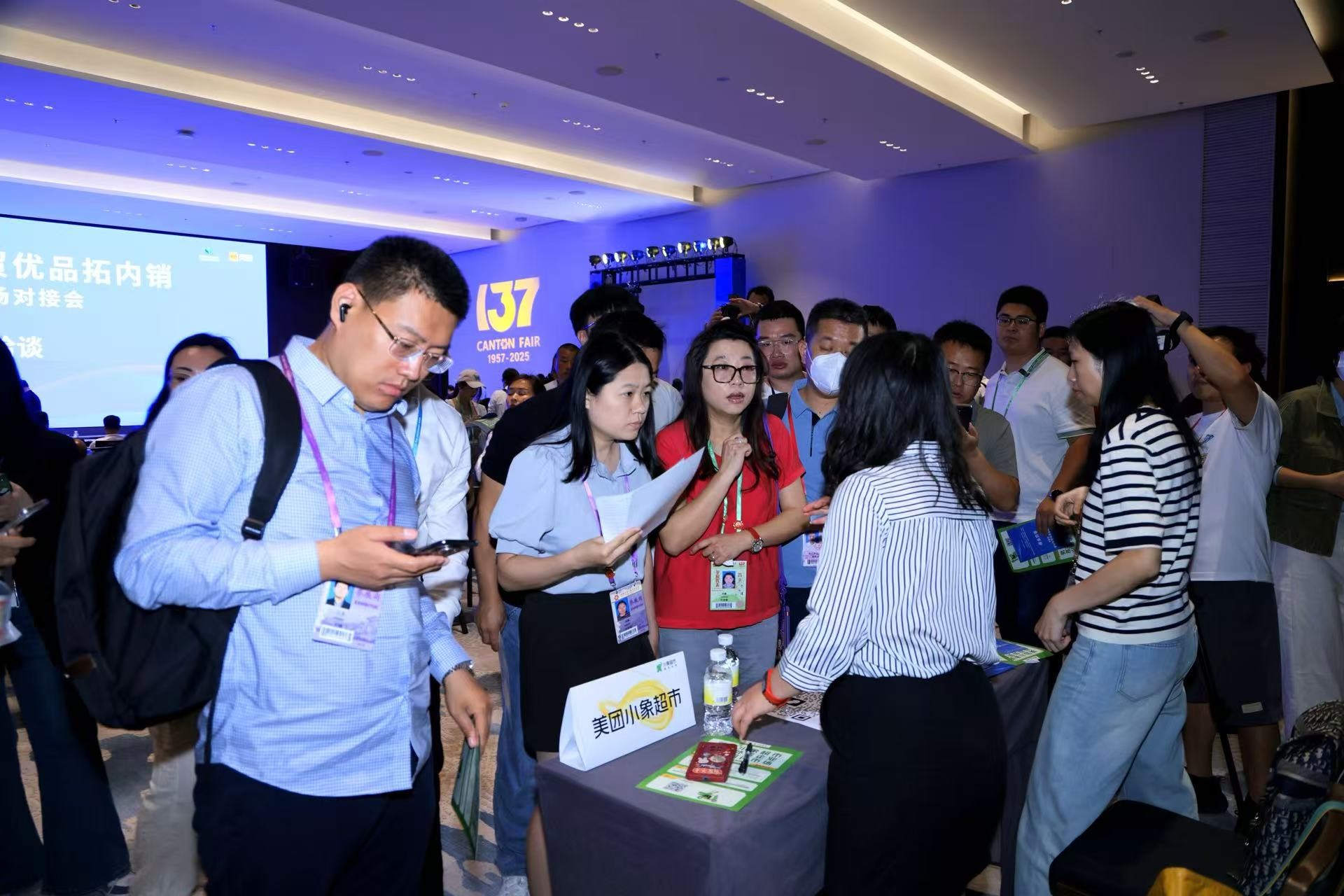 5月3日,在中国对外贸易中心、广东省电子商务协会、广州市食品企业协会的支持下,由美团与中国食品土畜进出口商会联合举办的“2025美团外贸优品拓内销消费品专场对接会”,在中国进出口商品交易会现场举行,吸引来自水海产品、蔬菜水果、调味品、休闲食品、酒饮等行业的100余家外贸企业与美团多个业务负责人现场对接,表达合作意向。